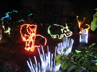 The Arizona Zoo puts on "Zoo Lights" every year. These pics are just a couple of the scenes. Over the water they play music and all the lights change to the beat of the music. Lots of other lights on the water that don't show up in this pic - need music for them to pop up. There are 3.7 million lights and takes them several months to put up. Takes about 1 hour to tour the grounds.
